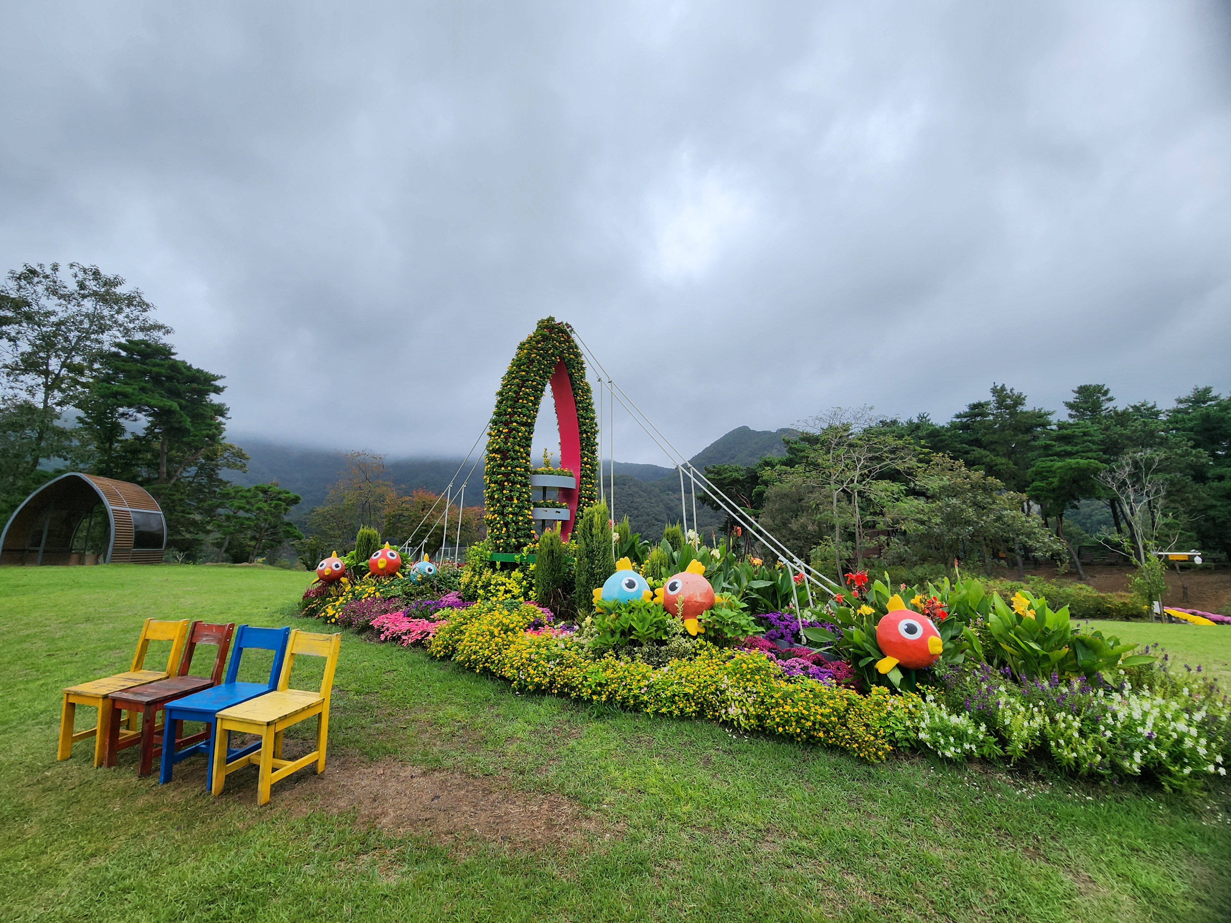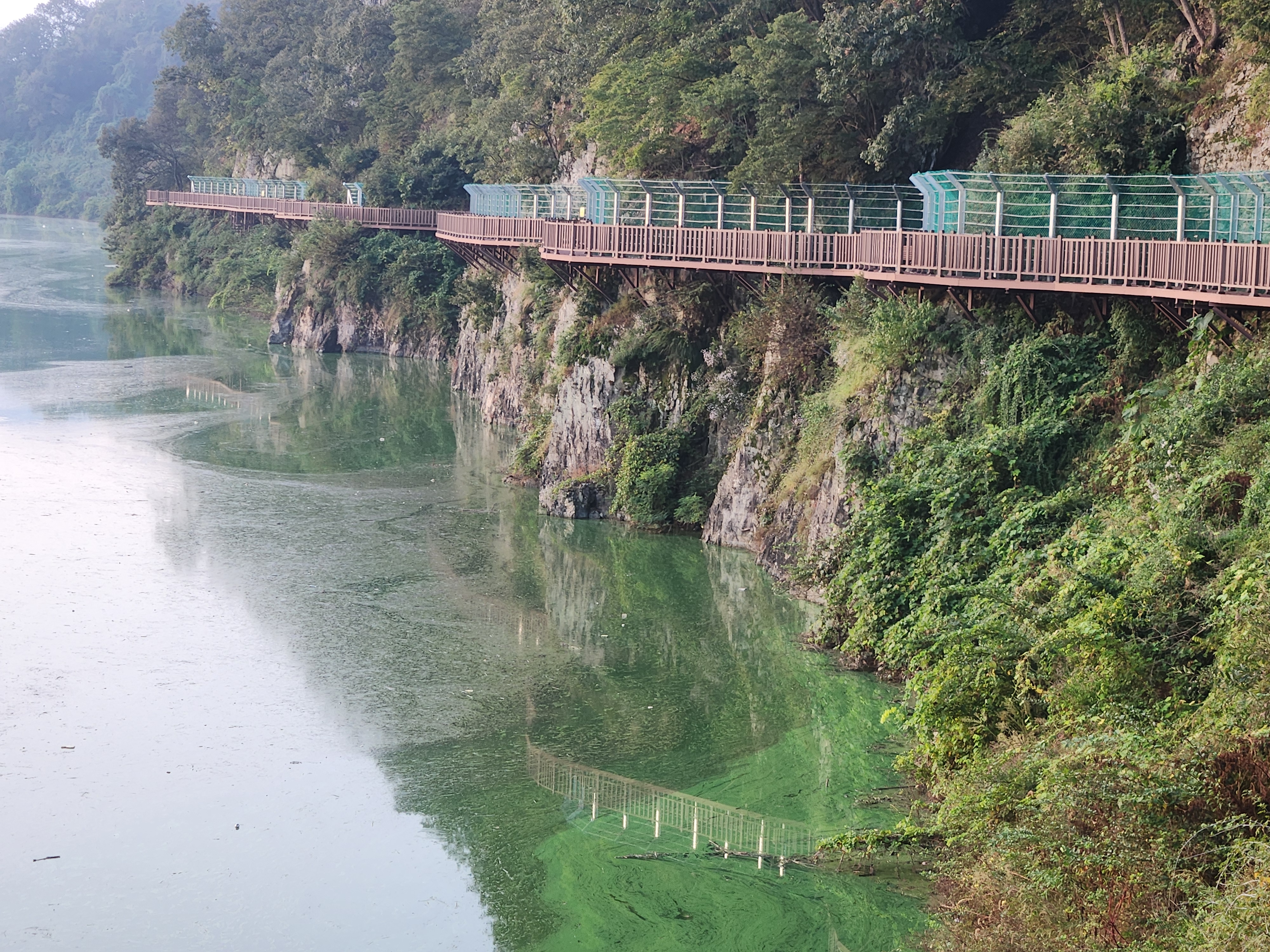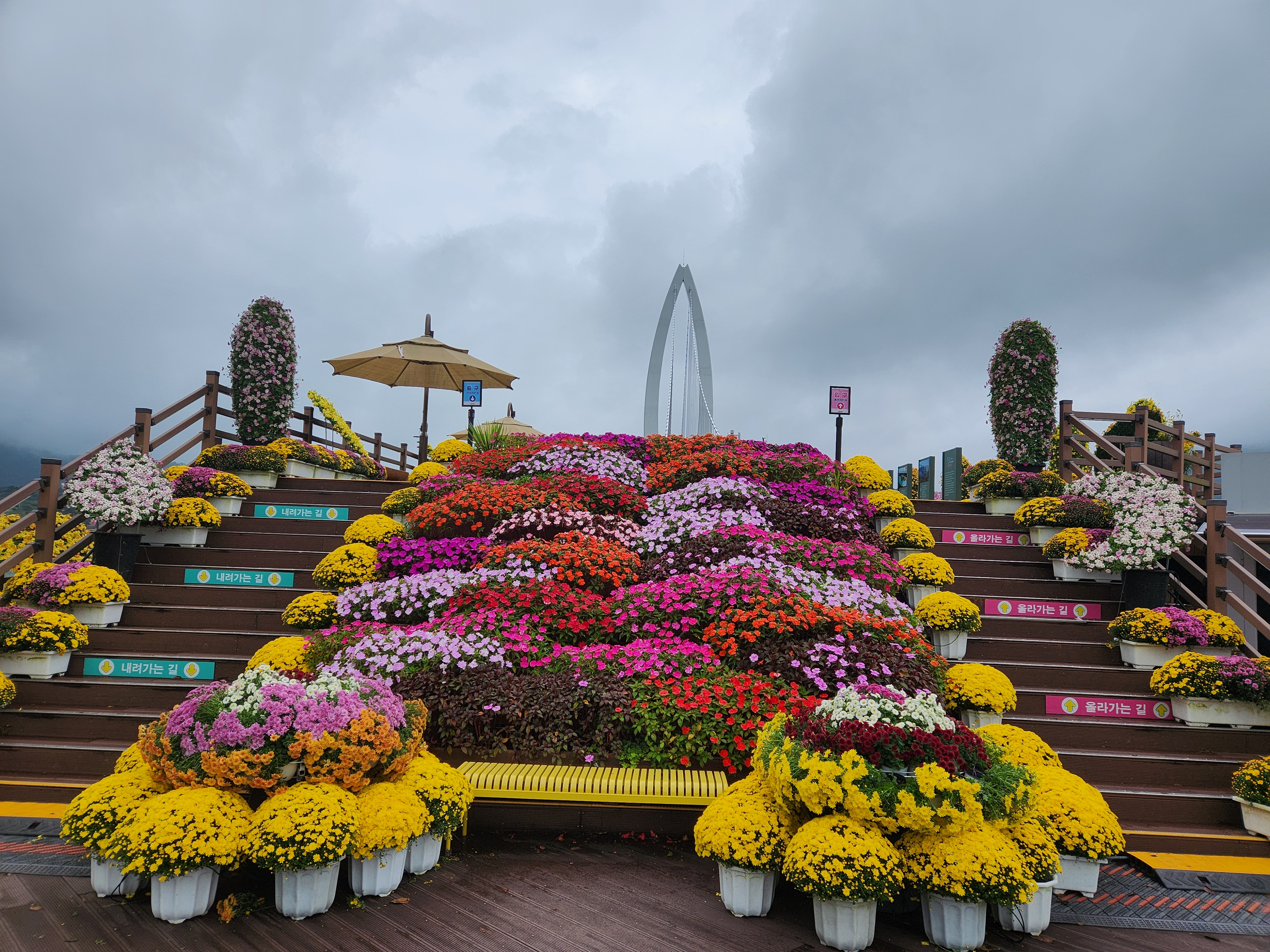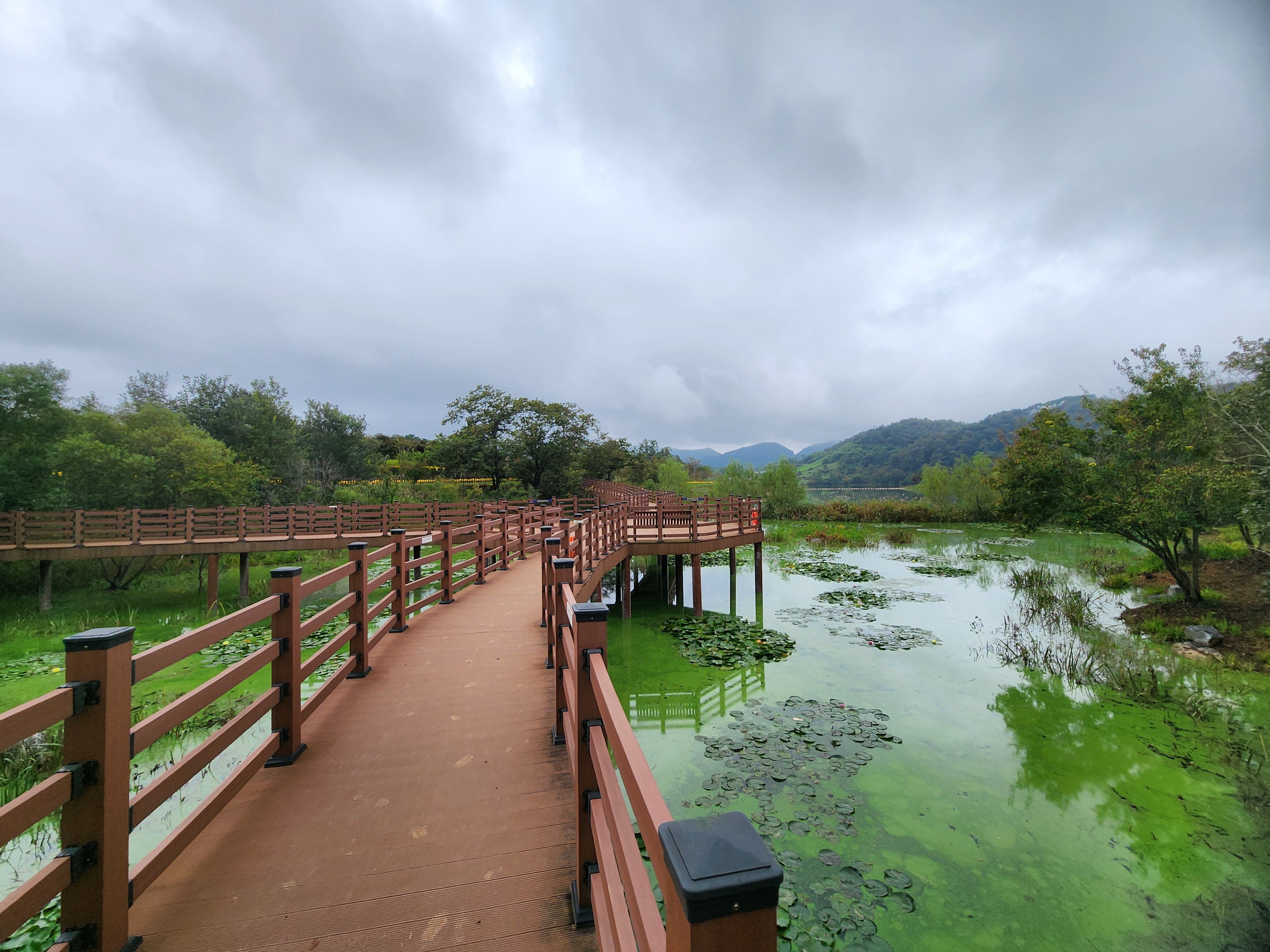 운암 전승지주차장 중간에 임진왜란 당시에 임실군 운암면 전투에서 천명의 의병을 이끌고 만여명의 왜군을 섬멸한 충장공 양대박 장군의 승전을 기념하기 위한 승전비가 세워져 있다.기존 옥정호 물안개길에다 4㎞ 붕어섬길을 새롭게 조성해 옥정호 붕어섬의 절경을 더욱 가까이 볼 수 있도록 했다. 전승지주차장에서 출발해 용운마을을 되돌아 와 붕어섬길과 출렁다리를 지나 붕어섬 생태공원 그리고 국사봉전망대까지 이어지는 약 12㎞ 탐방 코스를 걸어 본다.양대박 장군 승전비 옆으로 길을 따라 수변으로 갔더니 전망태크로 들어가는 곳을 막아 놓았다. 나 같은 사람이 한 둘이 아니었는가 보다 난간을 넘어간 흔적을 볼 수 있다.전승지주차장에서 용운마을까지 2.1km의 잔도길을 설치되어 있다.일교차가 큰 이른 가을 아침, 물안개가 피어오르며 섬의 자태가 드러나는 붕어섬의 모습은 절경이다. 이제는 현수교 출렁다리의 풍경까지 보게 되었다.걷는 내내 옥정호잔도길을 통해 붕어섬을 비롯한 옥정호의 주변절경을 감상할 수 있다.출렁다리에 이어 잔도길도 전국에 유행처럼 만들어 지고 있다. 삶의 질을 높이려는 목적이 있겠지만 과연 좋은 현상인지 생각해 볼 문제다.일출은 한참 지났지만 산에 가려 이제사 일출같은 모습을 볼 수 있다.간간히 쉼터도 있었 쉬어갈수 있으나 햇빛 가림막이 없는 것이 아쉽다.잔도길이 끝나고 용운마을까지 300여m 야자매트를 걷게 되어 있다.운암면 용운리용운마을 반환점에서 왔던 길을 되돌아 붕어섬출렁다리로 간다.되돌아 가는 길에는 오봉산과 국사봉이 전면에 들어와 좀 더 깊이 옥정호를 들여다보는 코스로 호수와 산이 빚어낸 작품들 속을 걸으며 신선이 된 듯한 기분을 느낄 수 있다.걷다보면 물속에 또 하나의 산세를 감상할 수 있다.그러고 보니 4코스 옥정호 물안개 길은 무장애 데크길이다. 전승지주차장에서 부터 갈지자로 무장애 데크길을 만들어 놓았다.다시 전승지주차장에서 출렁다리로 간다.잔도길을 걷다보면 길을 통해 감수성을 풍부히 끌어올리고 영감을 얻을 수 있으며,바라보는 것 만으로도 산과 호수가 빚어낸 붓터치와 상쾌한 바람을 맞으며 시상을 통해 누구라도 화가가 될 수 있고 시인이 될 수 있을 것이다.전승지주차장에서 약 1.9m 정도에 잔도길이 끝나며, 국사봉으로 올라가는 갈림길이 나온다.갈림길에서 300여 미터에 붕어섬출렁다리 매표소가 있다. 출렁다리는 09시부터 입장을 하여 국사봉 전망대부터 가기로 한다.등산길을 따라 가다보면 전망처에서 내려다 보는 붕어섬 출렁다리가 한폭의 그림같이 다가 온다. 붕어섬 주변에서 가장 높은 나래산 정상에 구름 띠가 둘러져 있다.잔도 갈림길에서 약 600여m 올라가니 도로건너 국사정 정자가 보이고 그 뒤로 보이는 봉우리가 국사봉이다.국사봉 주차장에서부터 바로 가파른 계단이 이어진다. 경사가 만만치 않아 거리에 비해 힘이 좀 드는 편이다. 다행히 가장 꼭대기 전망대까지 300m 정도에 불과해 시간은 많이 걸리지 않는다. 아주 천천히 걸어도 10분 안팎이면 닿을 수 있다.국사봉으로 올라가는 등산로에 3개의 전망대가 연속으로 나오는데, 마지막 3번째 전망대가 붕어섬을 조망하는대 제일 좋은 곳이다.전망대에 서면 발아래로 옥정호 물길이 수직으로 내려다보인다. 크게 휘돌아가는 물길 속 외앗날도 손에 잡힐 듯 가깝다. 옥정호 붕어섬으로 불리는 '외앗날'은 하늘을 닮아 푸른 호수에 거대한 금붕어 한 마리가 누워 있는 형상이다.오봉산과 국사봉 산이 호수를 양팔을 벌려 감싸 안은 듯한 풍경과 사계절 다르게 보여진 옥정호 붕어섬은 사진작가가 많이 찾는 최고의 명소다.아침햇살을 받아 호수 면으로부터 아지랑이처럼 피어오르는 물안개는 마치 신선이나 노닐 법한 풍경으로 국사봉에서 보는 옥정호 붕어섬은 최고의 백미로 마치 백두산 천지에 와있는 듯한 착각을 일으키게 하는 곳인데, 아쉽게도 안개가 없다.옥정호출렁다리 매표소에서 성인기준 4,000원으로 매표를 한 후 출렁다리를 건너간다.출렁다리 입구부터 가을의 감성을 물씬 담은 국화로 조성을 하여 놓았다.붕어섬에서 하루는 아니어도 반나절이라도 알차게 보낼수 있다.옥정호 출렁다리 개통과 더불어 눈으로만 보던 붕어섬은 생태공원으로 탈바꿈하였다.길이 420m, 폭 1.5m의 옥정호출렁다리는 붕어 이미지를 표현한 80m의 주탑과 스틸 그레이팅 바닥 판으로 강바닥이 보여서 건너는 내내 흥미를 더한다.물고기를 형상화한 외관도 독특하지만 주탑 전망대에 오르면 옥정호 일대가 파노라마로 펼쳐진다.출렁다리 입구는 요산공원이다. 공원은 꽃으로 알록달록 장식돼 있다. 그 너머로 망향탑이 우뚝하고 그 옆에 양요정이란 정자가 아늑하게 자리잡고 있다. 조선 선조 때 인물인 최응숙이 임진왜란 이후 낙향해 지은 정자다. 양요정은 맹자의 ‘인자요산(仁者樂山) 지자요수(智者樂水)’에서 왔다. 아래 강가에 있었던 것을 수몰되기 전 옮겼다고 한다.붕어섬은 강물이 휘돌아 가는 물돌이동 지형이다. 외앗날이라는 향토 지명이 있는데, 사진작가들이 애칭으로 붕어섬이라고 하여서 관광지 이름이 되었다.붕어섬의 구